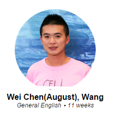 對自己英文頗有自信的我,剛來到這裡跟人家聊天,反而只能吱吱嗚嗚的說話,剛開始挺受挫的說,不過經過一段時間的一對一課程,和外師團體課程,漸漸地我能夠順利地和人家聊天,英文的能力也提升不少。